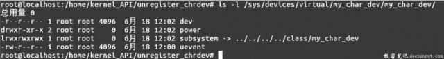 执行命令ls -l /sys/devices/virtual/my_char_dev/my_char_dev查看逻辑设备目录,出现如图D所示的结果。